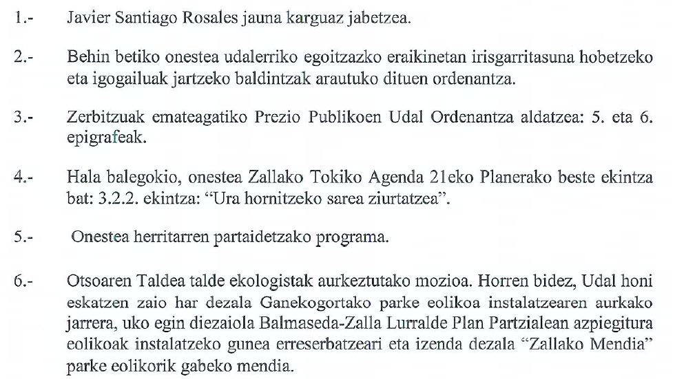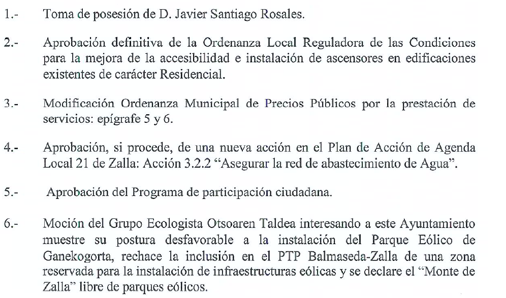 Deia egiten da Udaleko osoko bilkura egingo den aparteko bilkurarako 2012ko urtarrilaren 20an, 10:00etan. Eguneko aztergaien zerrenda hau da: