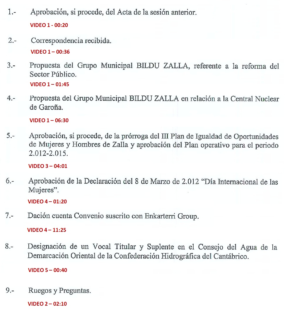 2012ko  martxoaren 07an Zallako udalak burututako osoko bilkuraren bideoak.